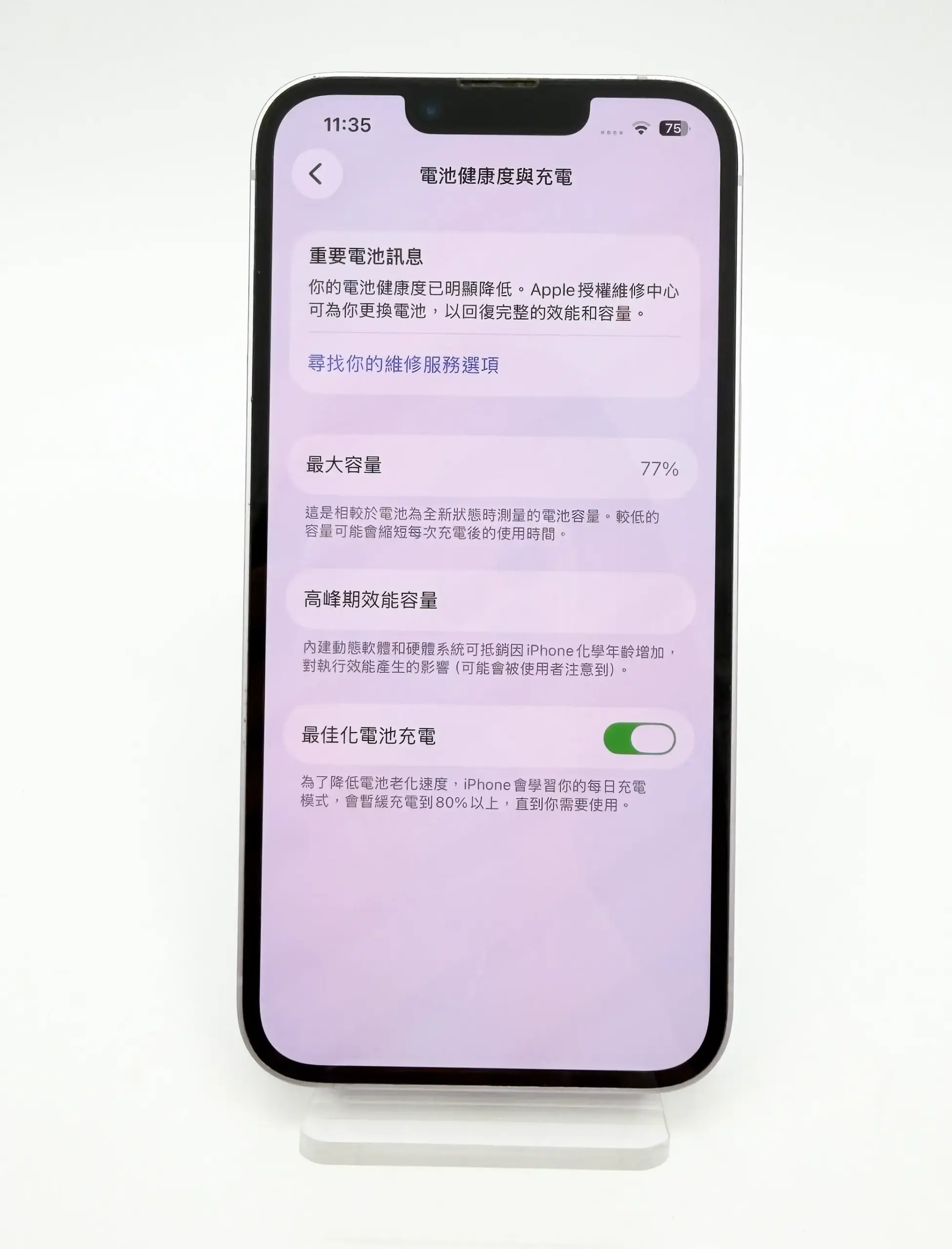 電池健康度:77%