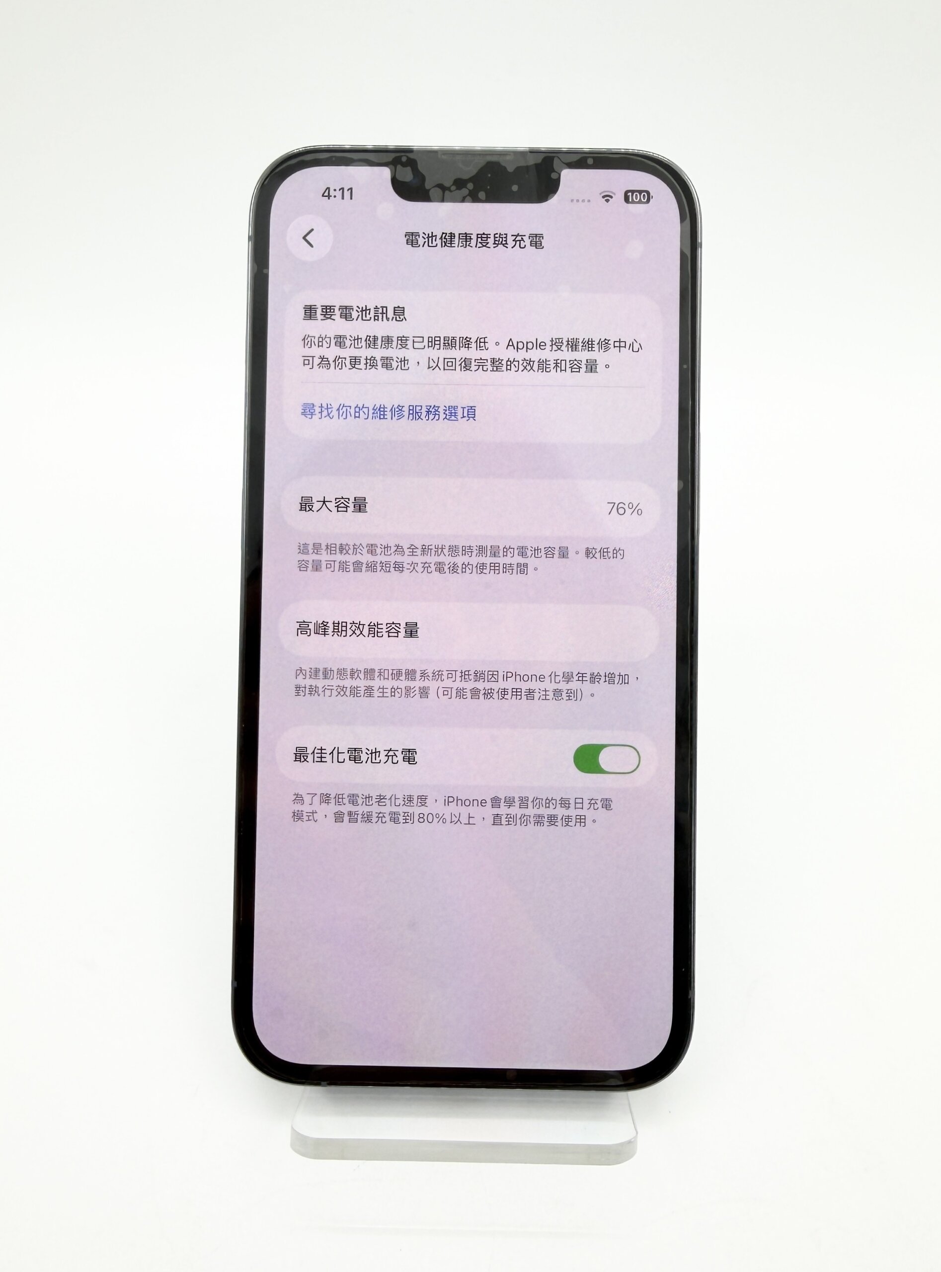 - 電池健康度:76%