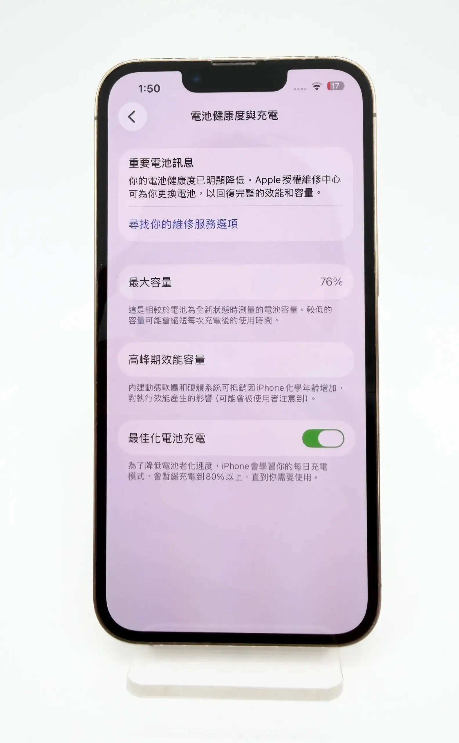 - 電池健康度:76%