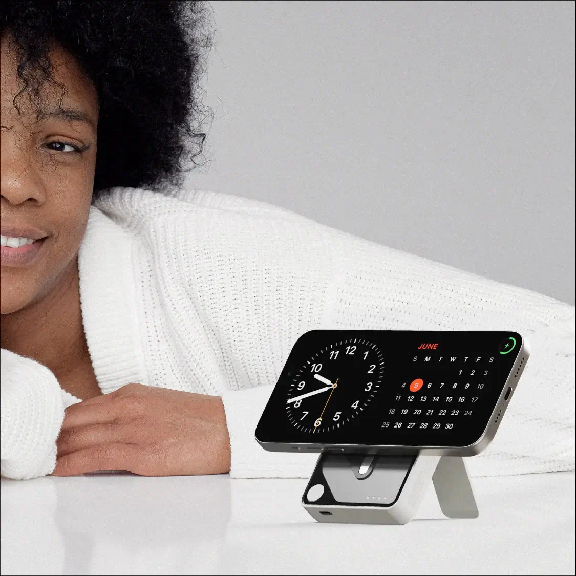鋅合金支架讓您可以手機免持使用,或輕鬆架起裝置進行充電。
