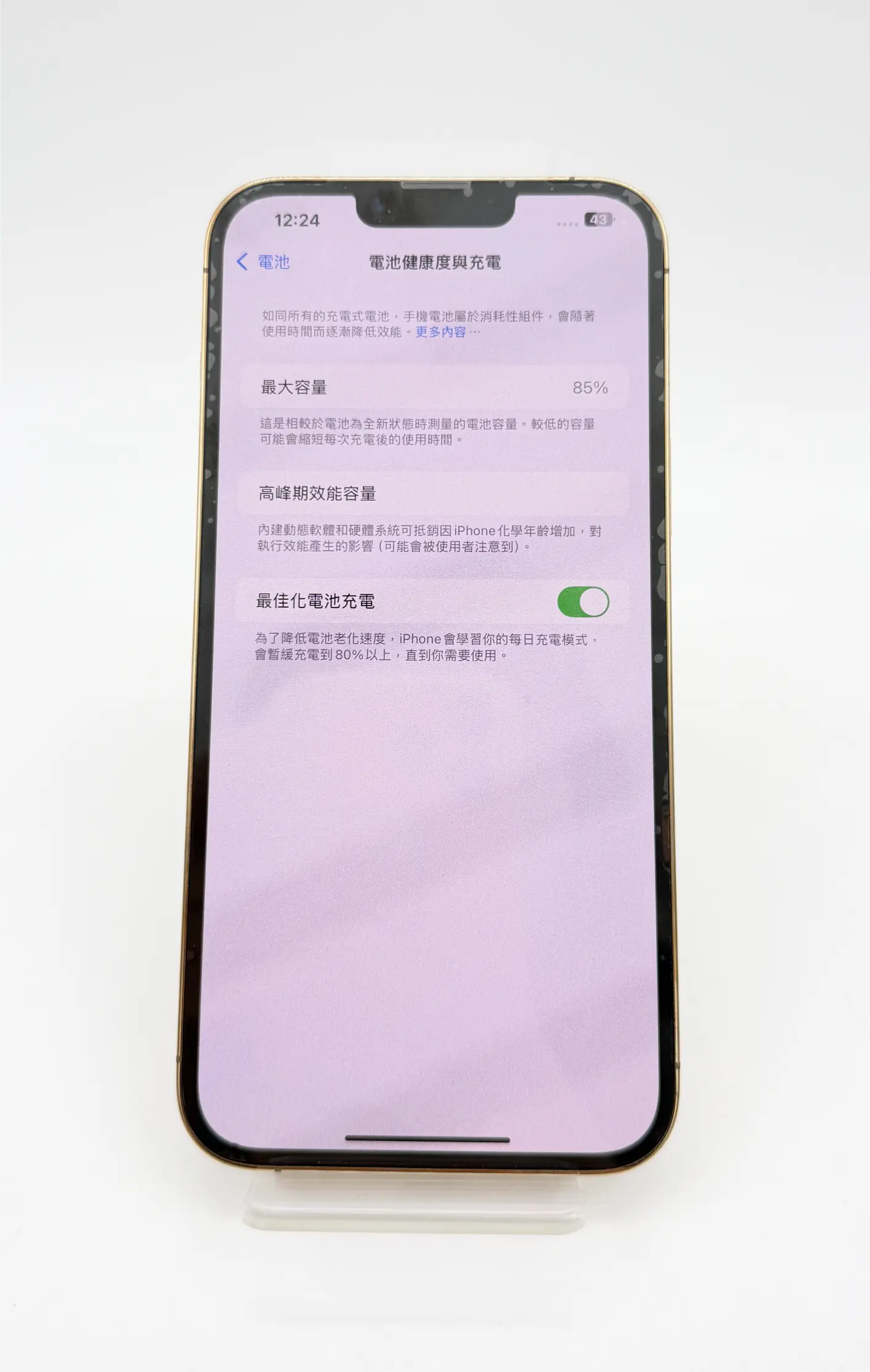 - 電池健康度:85%