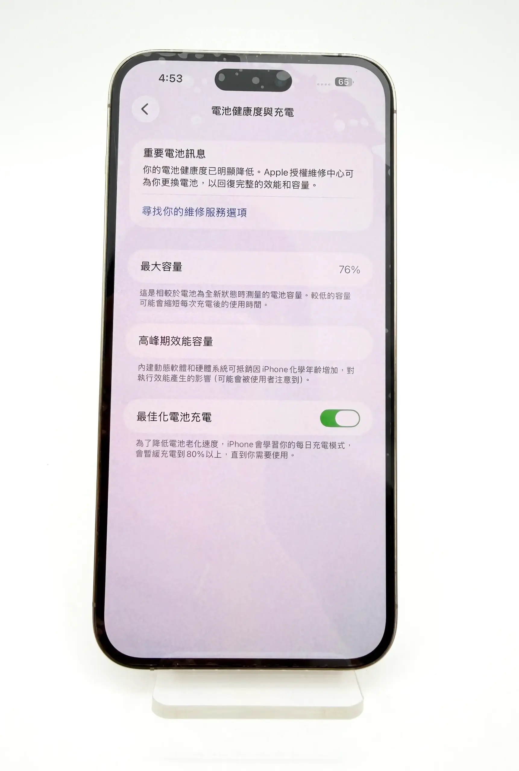 - 電池健康度:76%